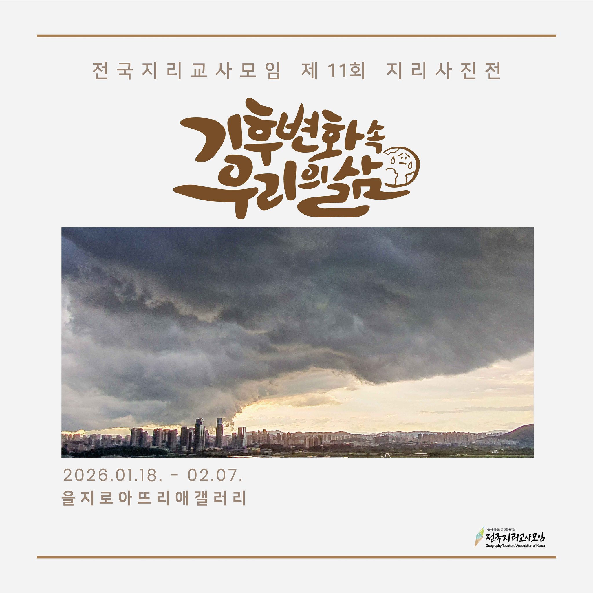 전국지리교사모임제11회 지리사진전 온라인 전시(e-book + 360VR)를 만들었습니다.포스터를 클릭하면 볼 수 있습니다.전자사진첩과 VR속의 사진을 클릭하면 좀 더 크게 사진을 볼 수 있습니다.